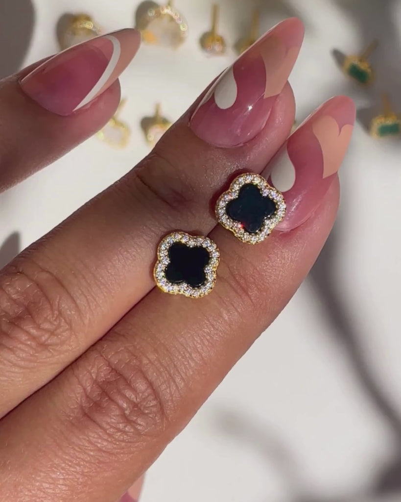 Náušnice Fleur Noir Pavé